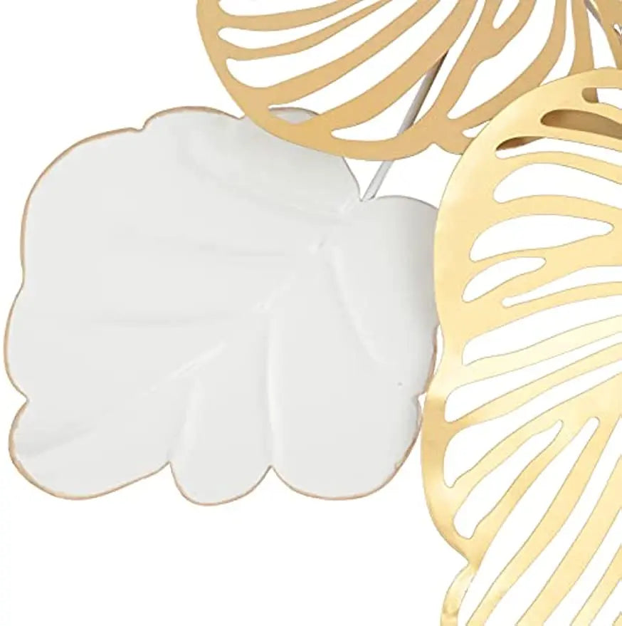 3D Metal Wall Decor Art Leaves Modern Home Sculptures Gold Flower Blooming