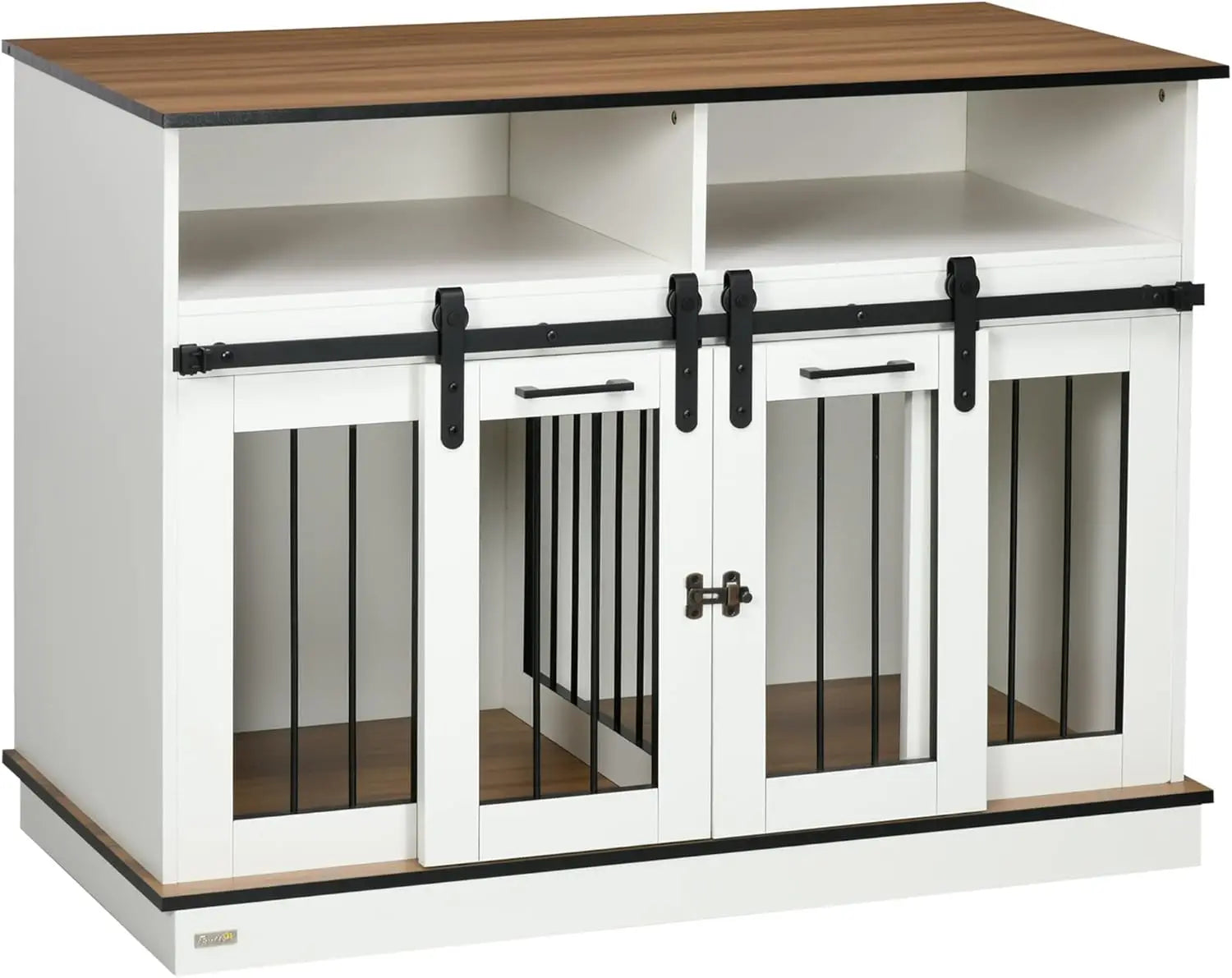Dog Crate Furniture for Large Dogs or Double Dog Kennel for Small Dogs with Shelves, Sliding Doors, 47" x 23.5" x 35", Gray