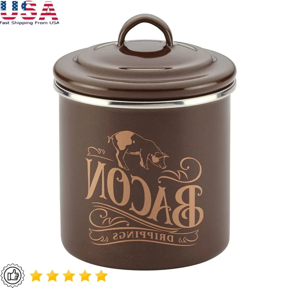 Durable Enamel Bacon Fat Container With Lid For Kitchen Storage