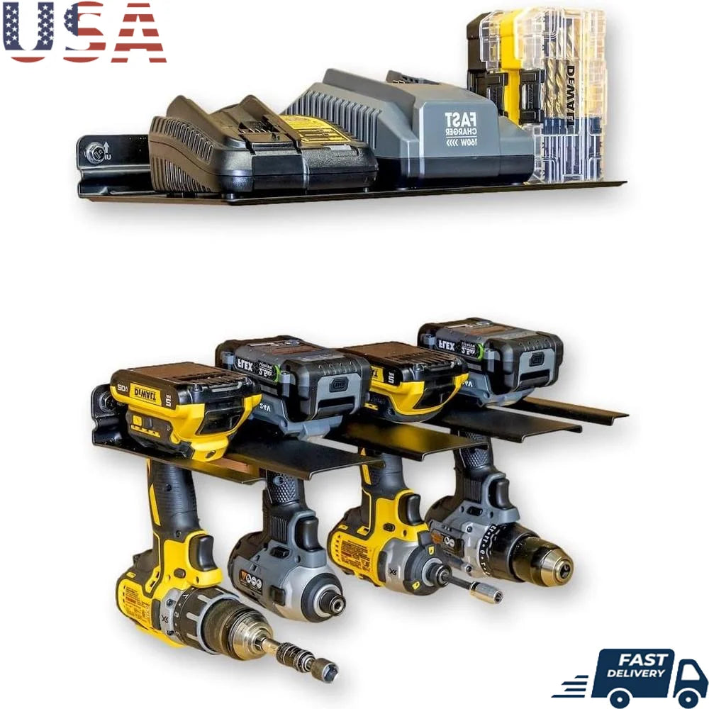 Elevate your workflow with the XMSJ Electric Drill Storage Rack Wall Mounted Organizer, a rugged wall-mounted system that keeps four drills, batteries, and bits neatly at your fingertips.
