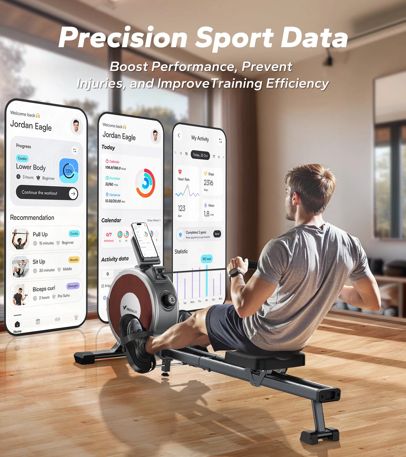 Achieve full-body cardio at home with a whisper-quiet magnetic rower that tracks your progress.