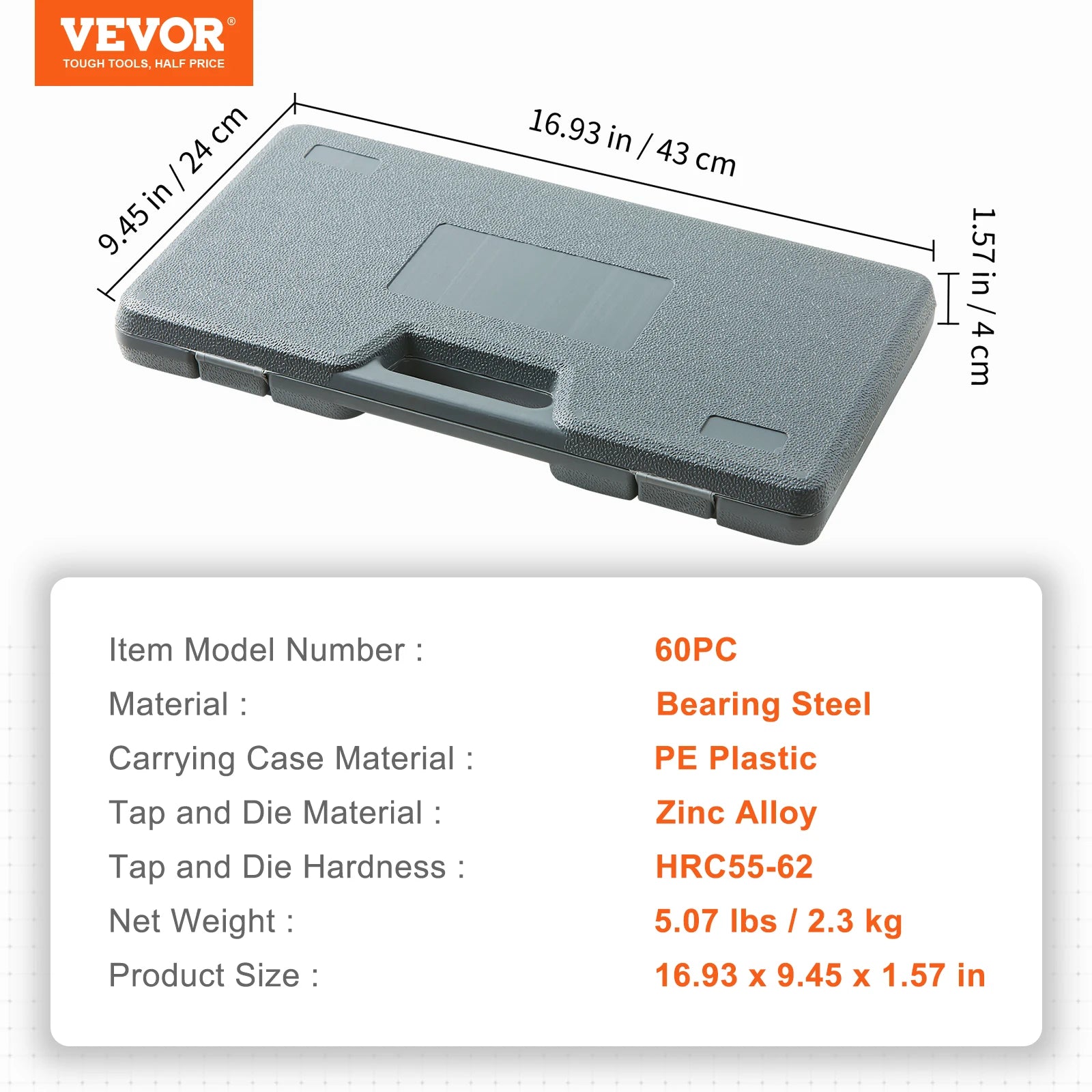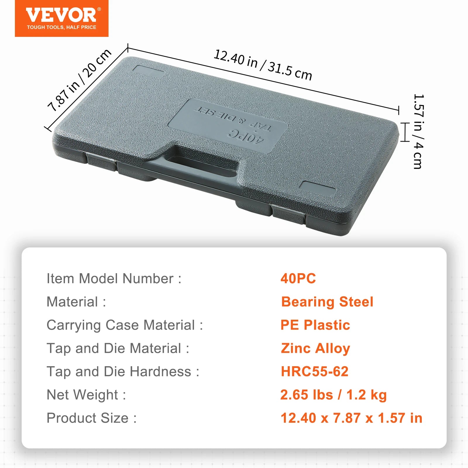VEVOR Tap And Die Set Bearing Steel Threading Tool Kit